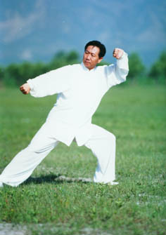 MR. DI: One reason is to study (Animal) Shapes Fists (Xing Quan), traditional sets of movements. The other reason is to make up for some deficiencies of Five Elements Fists. For example in Snake Shape (She Xing) one learns Lifting Power (Tiao Jin, upward power), which can't be found in Five Elements. In Tuo Shape one learns horizontal power which also does not appear in Five Elements. Besides Twelve Shapes teach many new techniques, applications - footwork, kicks, hand techniques. Then there is also Eight Characters Method (Ba Zi Gong)... JS: What is Eight Characters Method? MR. DI: Eight Characters are: Zhan (Opening), Jie (Intercepting), Guo (Wrapping), Kua (Collapsing), Tiao (Lifting), Ding (Propping), Yun (Waving), Ling (Leading). From the powers point of view Ba Zi Gong also compensates the deficiencies of Five Elements and Twelve Shapes. I believe each of these parts of Xingyiquan arsenal was created in the process of perfecting the art. For example Guo (Wrapping) does not exist either in Wu Xing or Shi Er Xing, it is a wrapping movement inwards. By the way my Ba Zi Gong is different from the one that was described by Jiang Rong Qiao. For example Jiang says Zhan means "Slaying" and it is just Chopping Fist (Pi Quan), while in my branch Zhan means "Opening up", "Spreading out" and means spreading both arms outwards. |